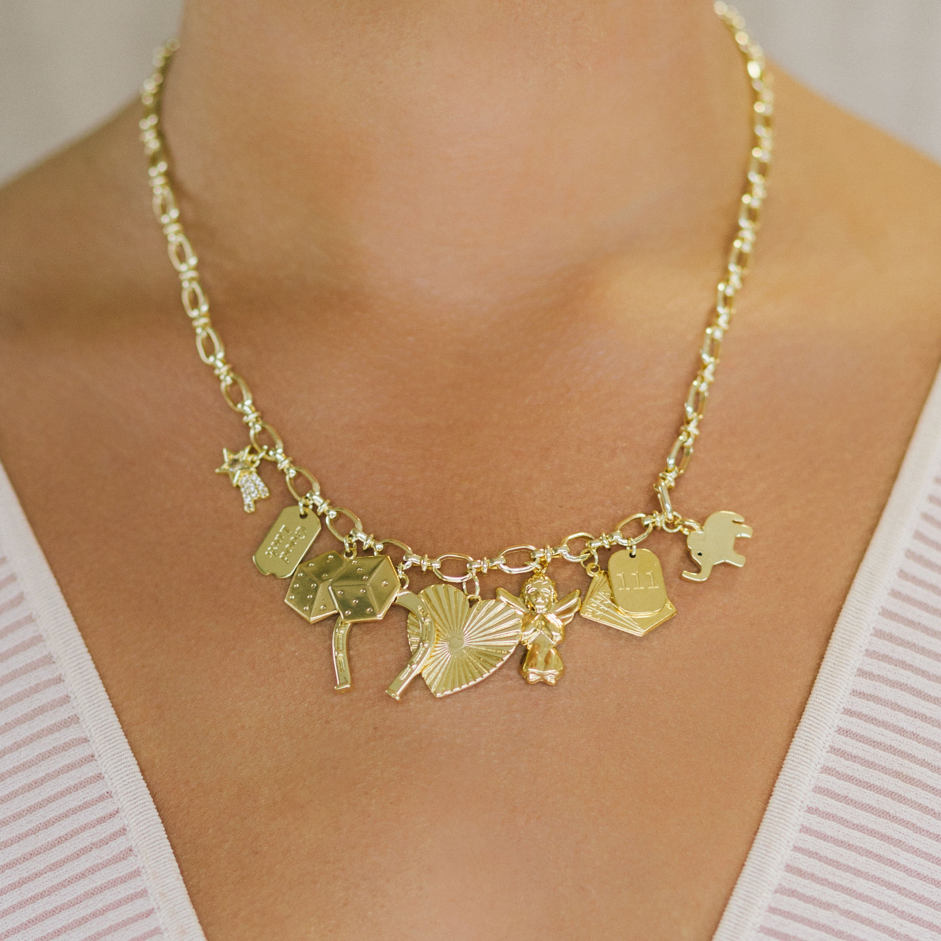 - Our gold-filled chain is adorned with gold-filled charms symbolizing luck, protection, manifestation, and prosperity.