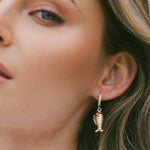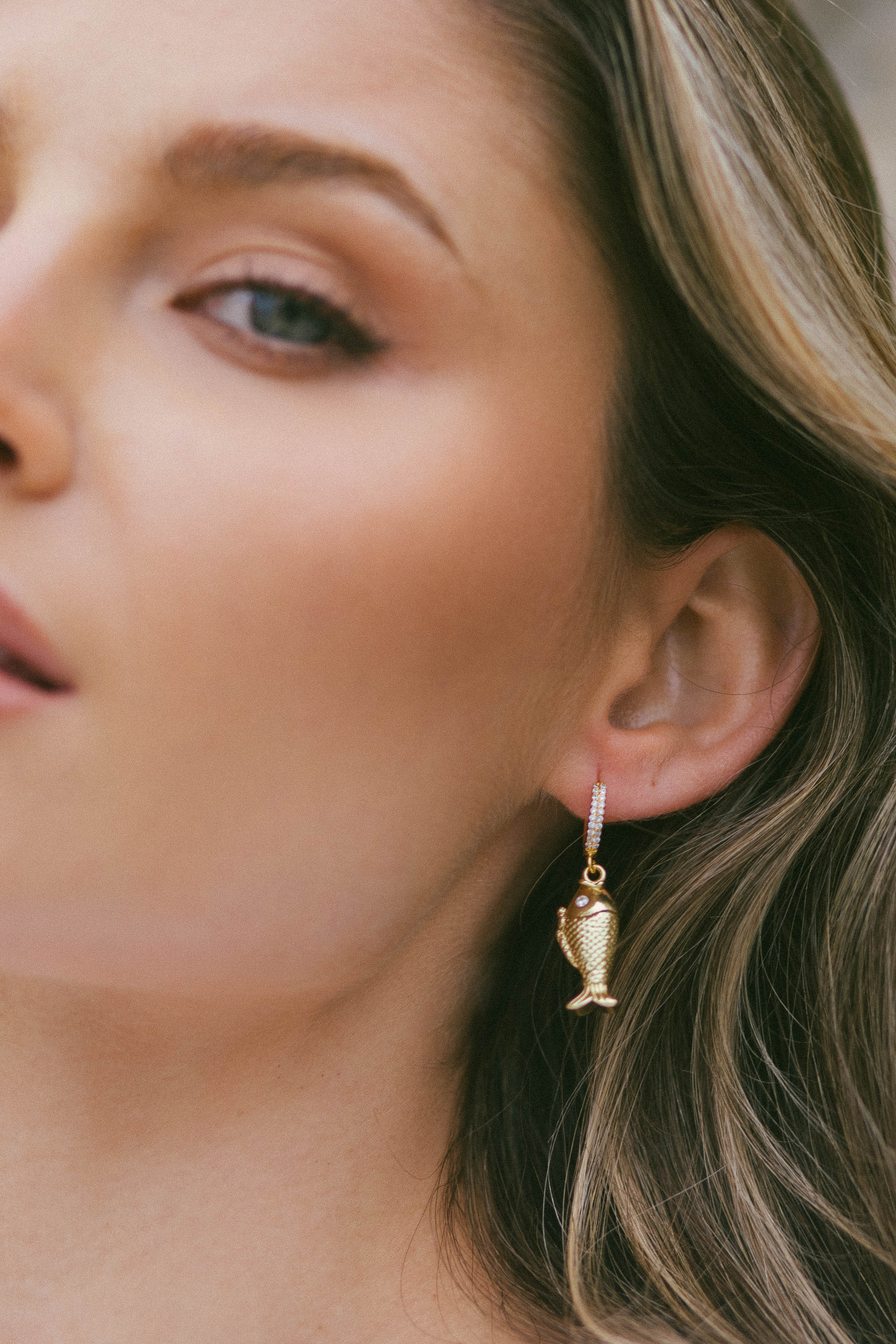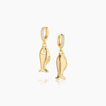 • Luxurious gold filled CZ pavé hoops are adorned with gold-filled fish.