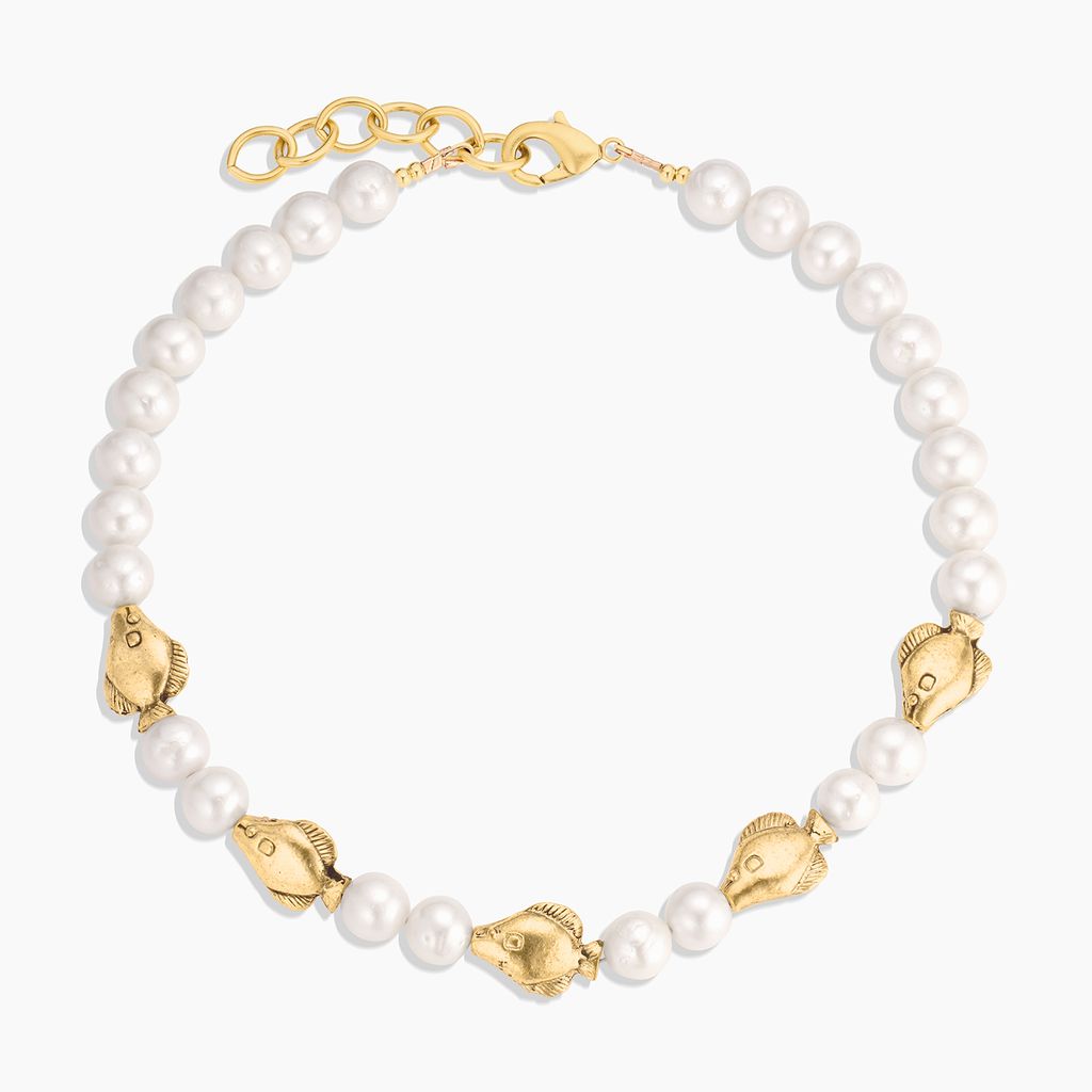 A stunning combination of freshwater pearls and gold-filled fish, THE SEA SALT is a summer statement.