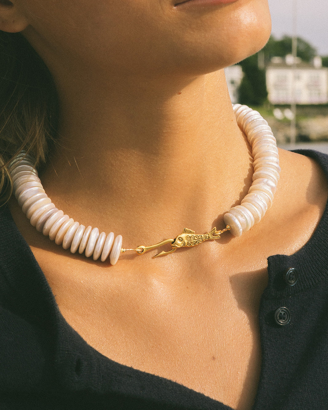 - Get two necklaces in one! Wear the clasp in the back for an all-pearl chocker or show off it's unique fish-hook design with its front-facing toggle.
